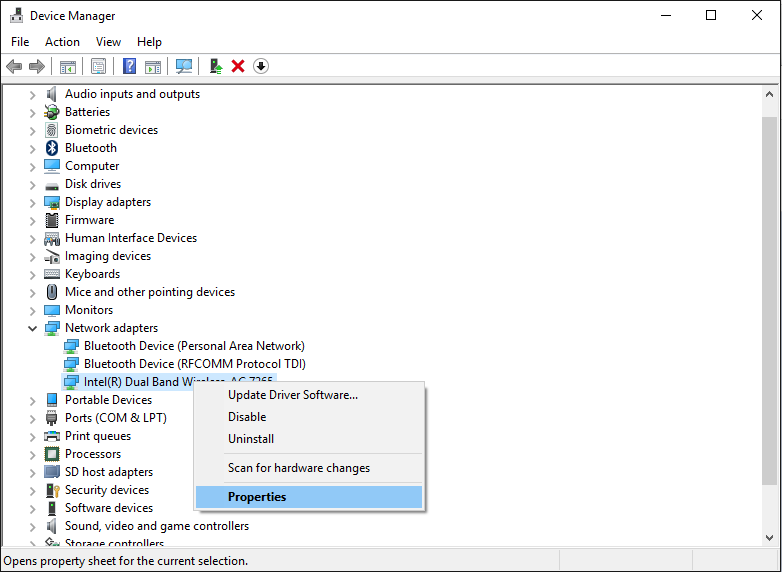 Device Manager > Network Adapters > Intel Dual Band Wireless > Update Driver Software